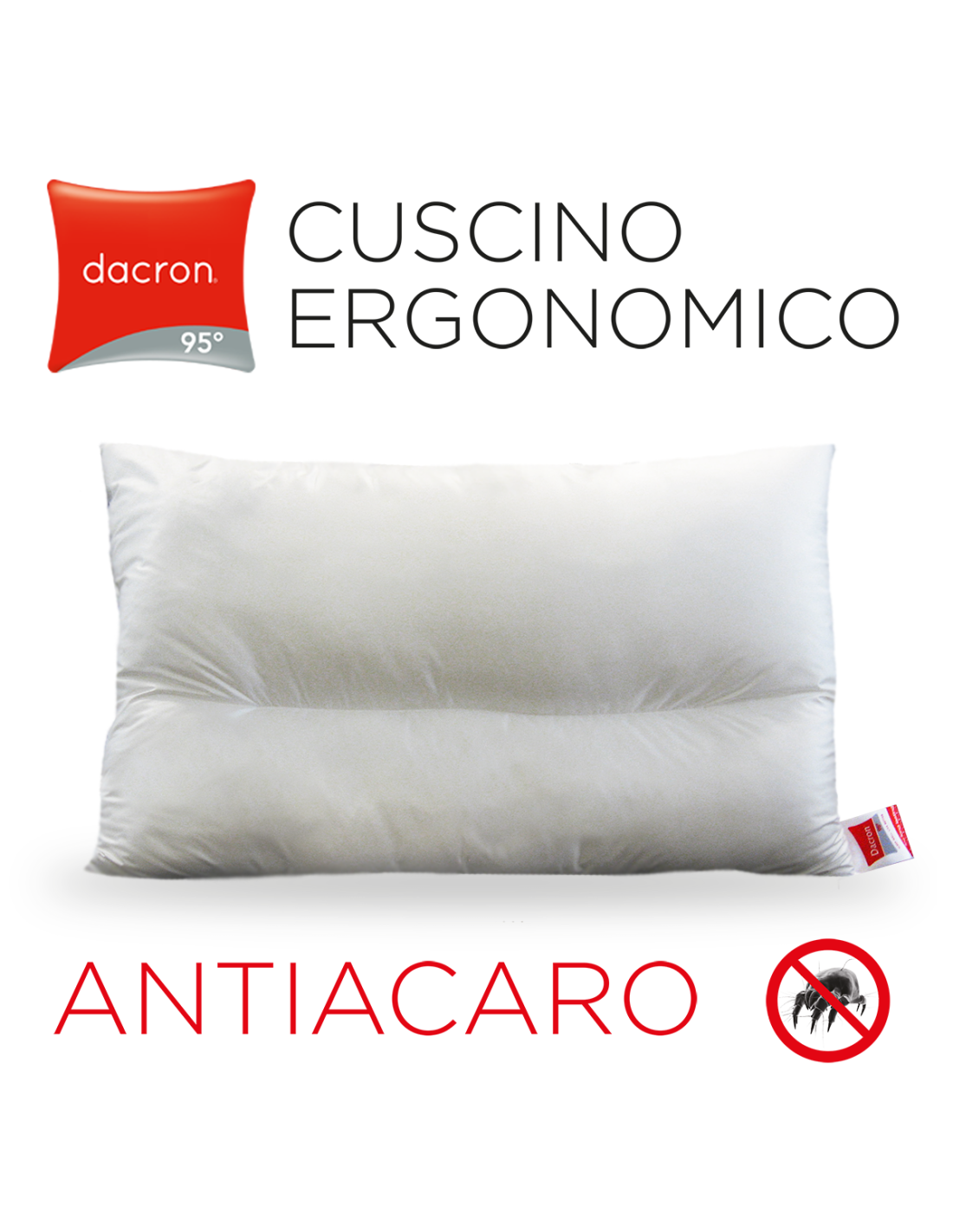 The ergonomic pillow is made with a sewing crossing the lower part of the pillow, which separates the stuffing, giving more support to the neck. Made with our innovative anti-dust mite fabric, the pillow can be washed up to 95°C; the special stuffing guarantees the best comfort, even after several washings, and - thanks to its memory effect - it always goes back to its original shape.