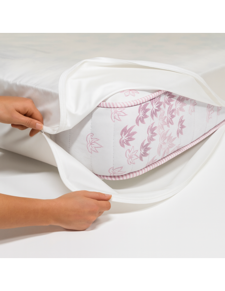 • Facile da applicare (il tessuto molto liscio facilita l’applicazione del coprimaterasso).